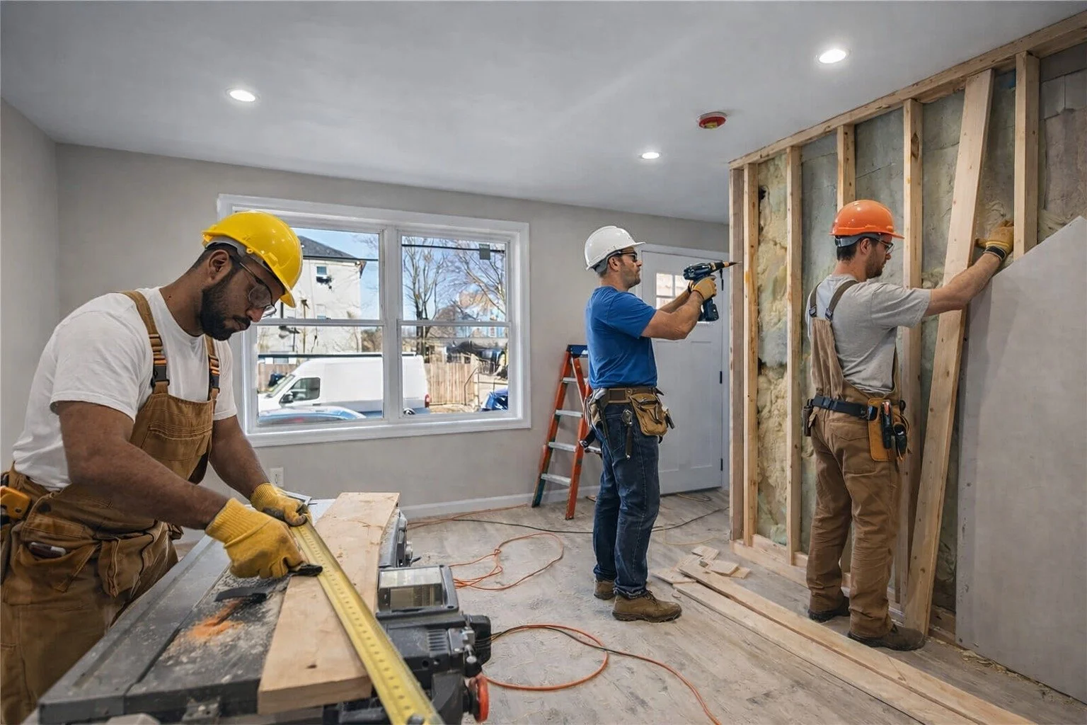Completing insulation, drywall, plastering, painting, and flooring for a polished interior